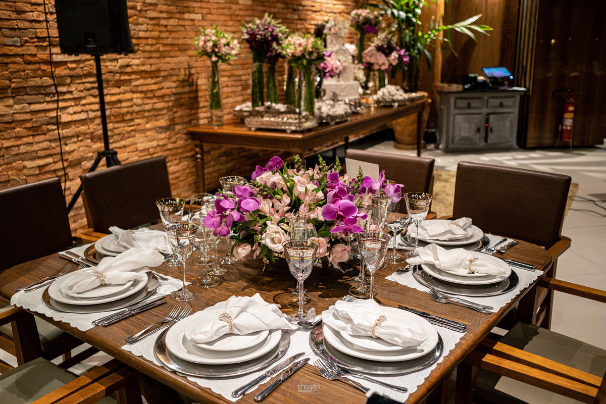 Como estão longe, fizeram uma cerimônia bem intimista, mas super sofisticada.